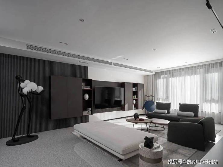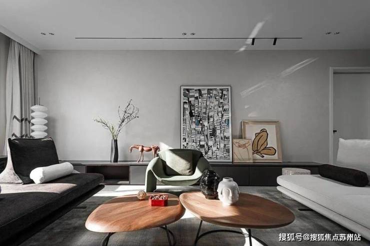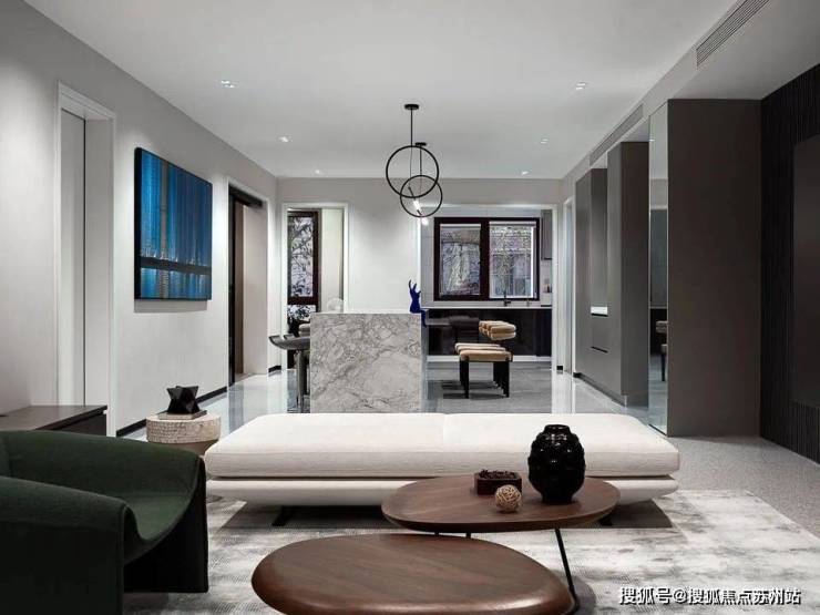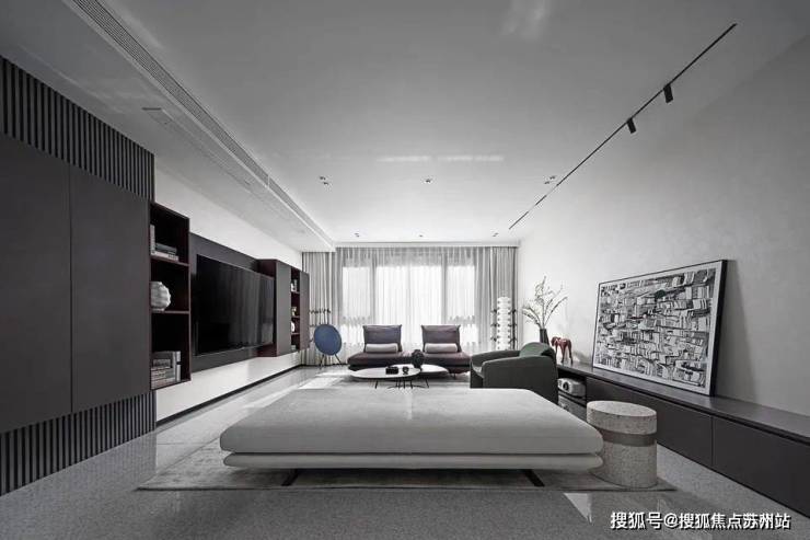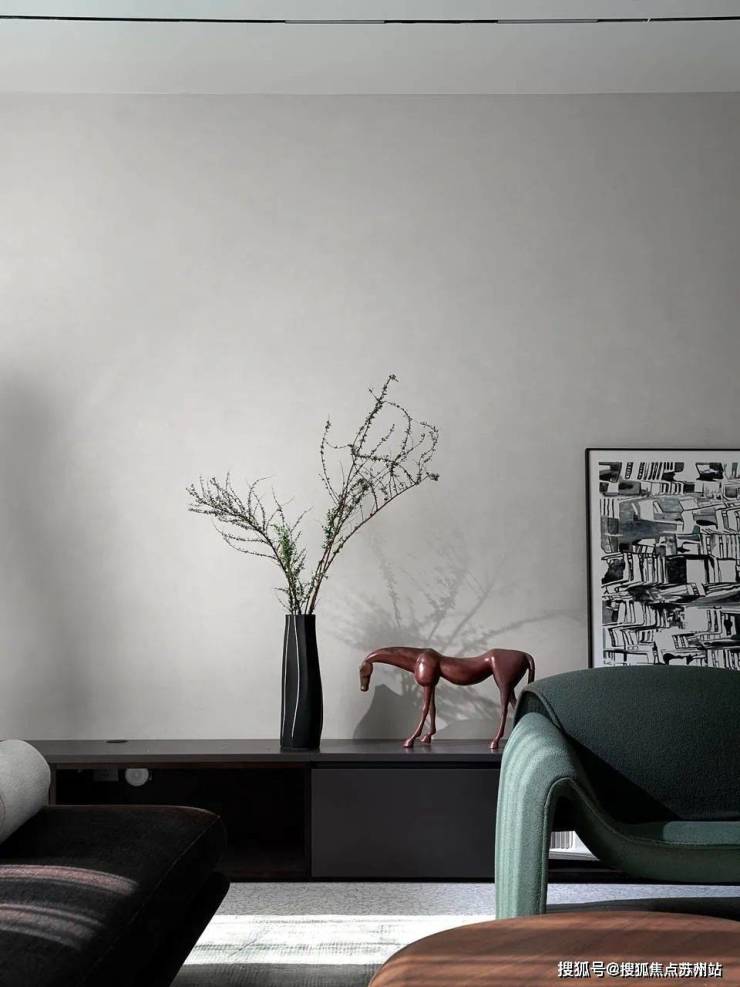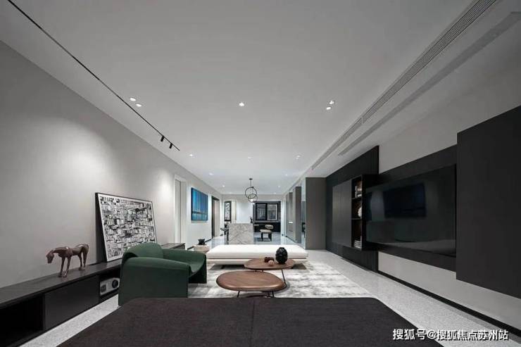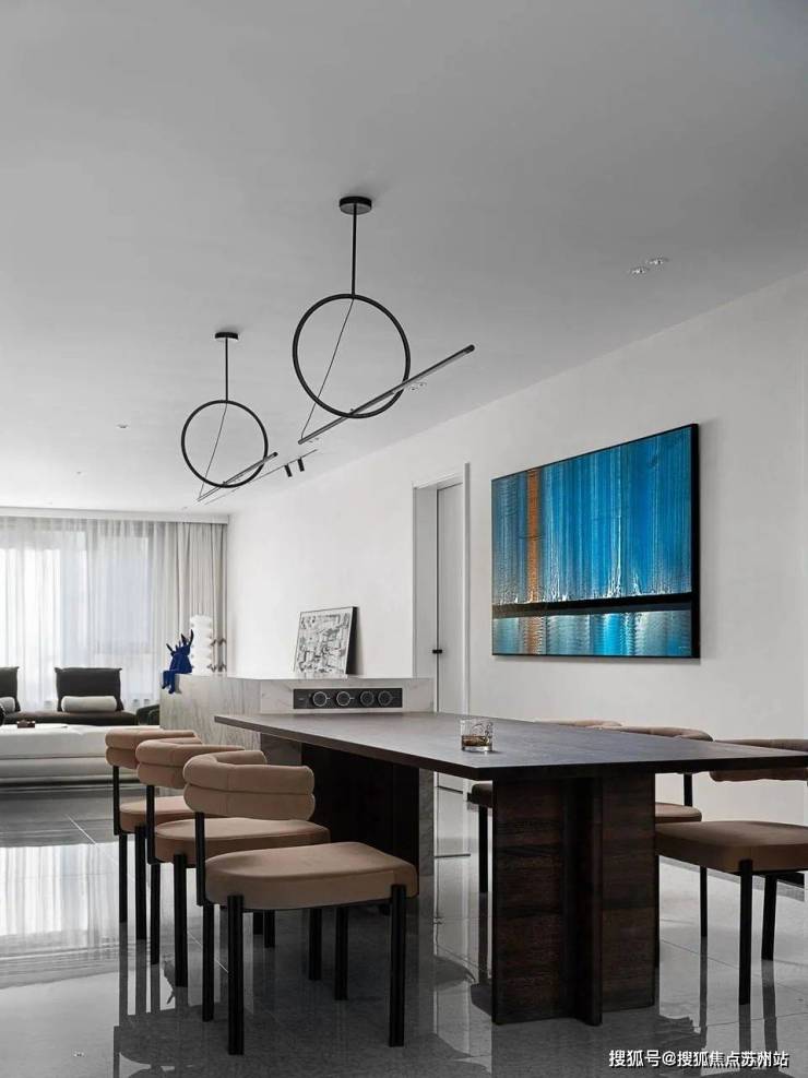 The line of sight slowly moves into the living room. There are no partitions in the entire space. The large open layout provides a beautiful background for the design and becomes the most powerful background.The homeowners are a young couple who have very clear requirements for the overall design: a high-end sense of minimalism and art, and a sense of comfort that goes hand in hand with personality and quality.
