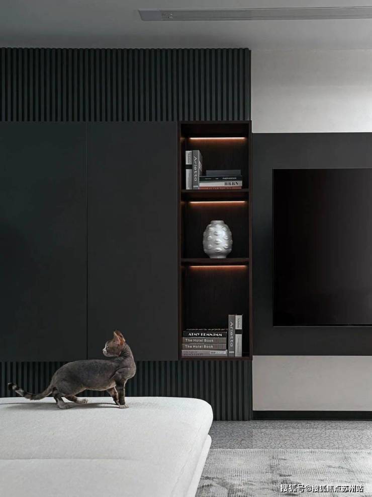 这其中也隐藏了诸多细节,比如全景一体化岩板背景墙。