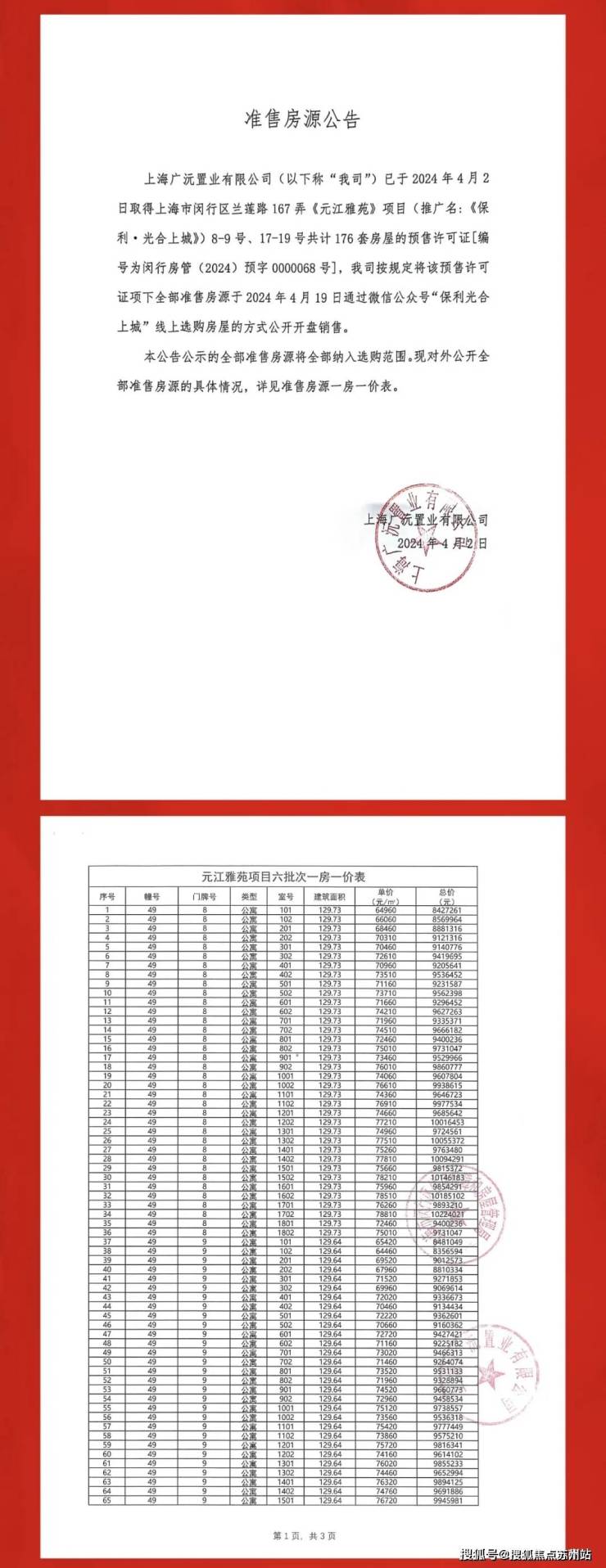 最新一房一价表: