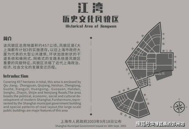 从风貌区占地面积来看,整个江湾风貌区占地约457公顷,是上海第三大的历史文化风貌区。排第一的徐汇衡复风貌区,第二是长宁的虹桥路风貌区。