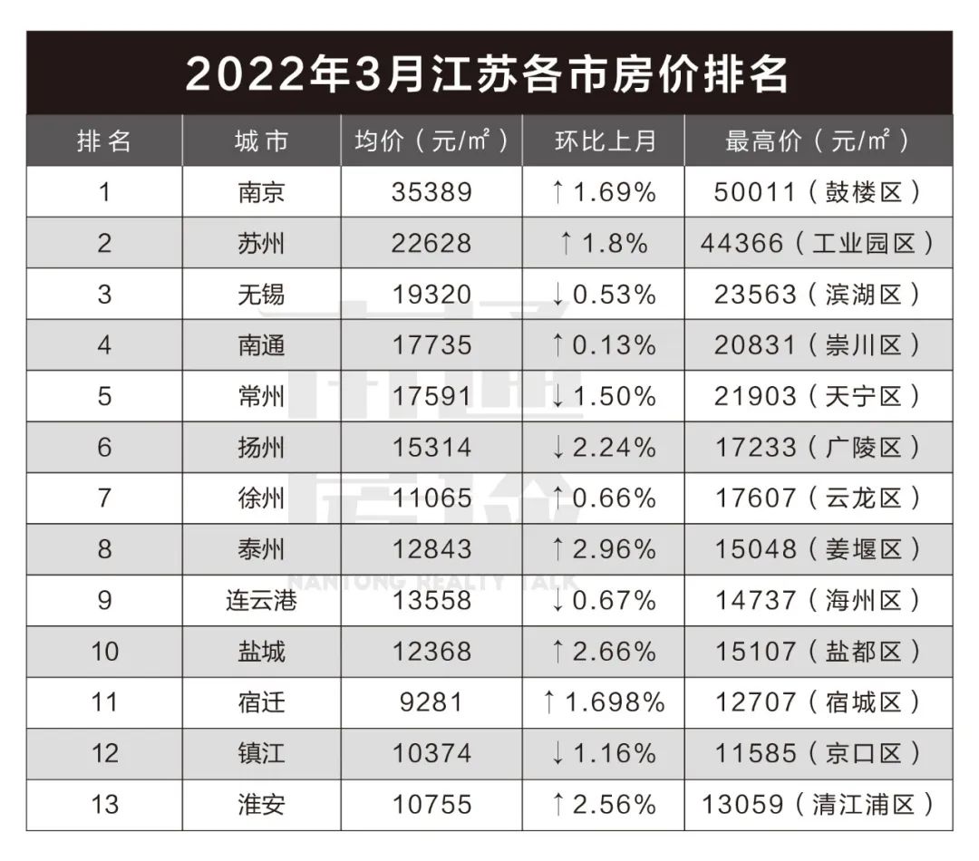 较新!刚刚,江苏13市价格表出炉