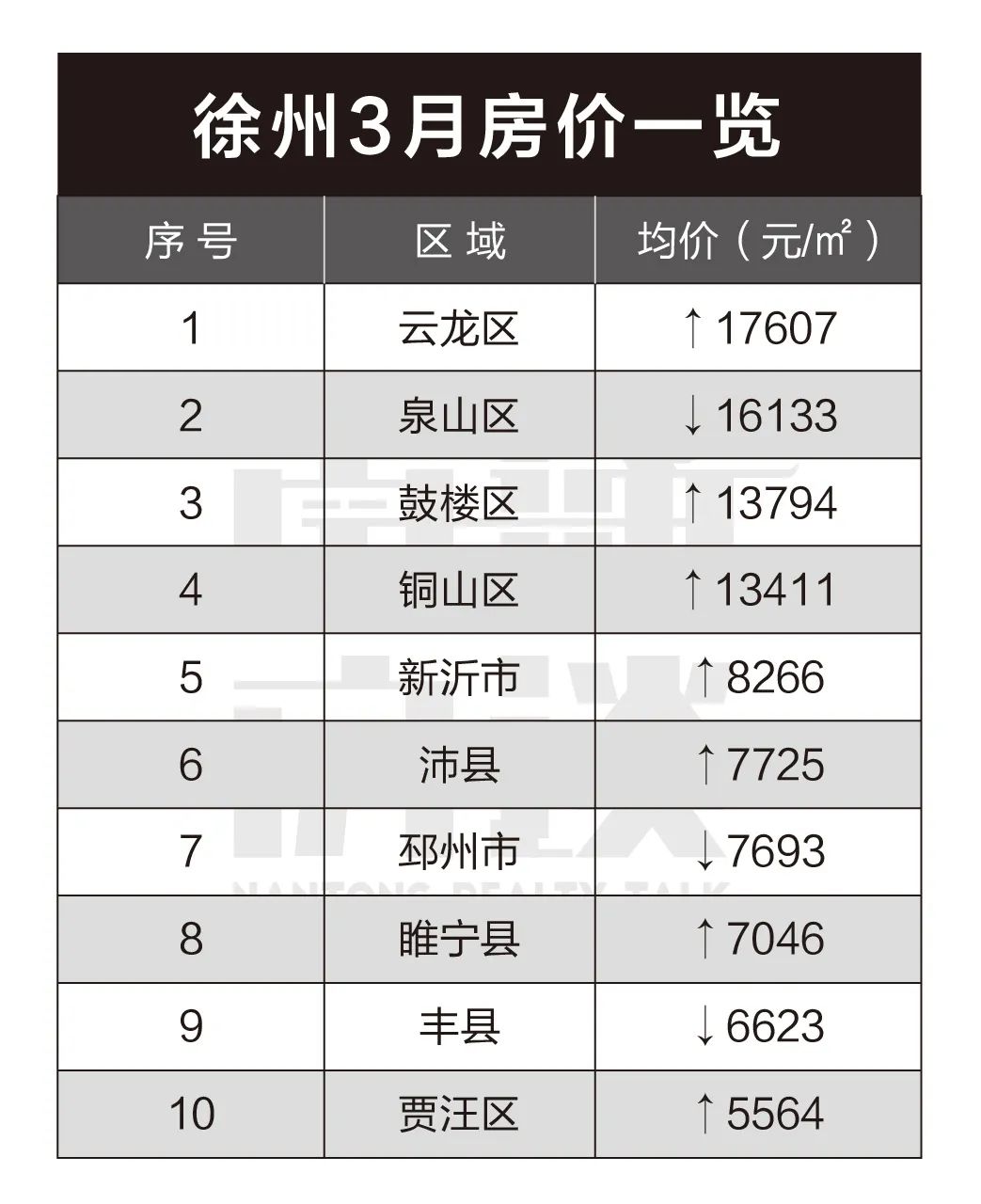 从具体区域来看,徐州本月7区域上涨,其余仅泉山区、邳州市和丰县有下降趋势。