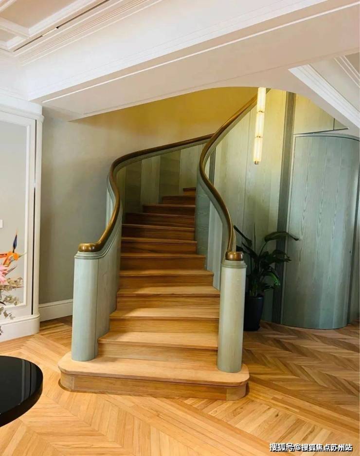 现场的部分工法展示就足够体现项目的“讲究”:全屋超强喷淋灭火装置,360度无死角,防火安全保障;室内旋转楼梯的木材来自东南亚柚木;配置豪华双开实木门,进门大空间玄关,甚至屋内还有安全屋......
