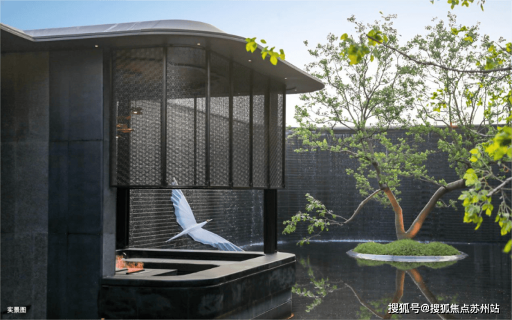 它汲取宋徽宗《瑞鹤图》,形成瑞鹤祥云的景观雕塑,同时将上海市花"白玉兰"灵感,融入景墙和门扉上。
