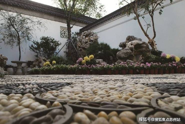 拙政别墅沿袭中国私家园林气脉,在庭院、天井以及路径用石材与砖材铺设成十字海棠、冰格、梅花等寓意吉祥的传统文祥,是“拙政十二景”意境的延伸。