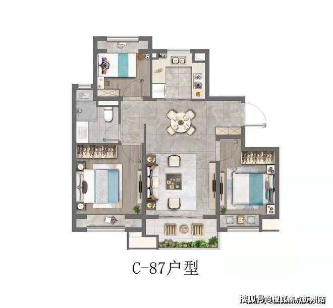 建面约76-104㎡2~3房