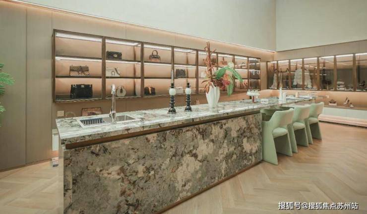 进入城市会客厅内部,奢贵优雅的海派气质扑面而来,年度热播剧《繁花》镜头里的老玻璃,令人瞬间把思绪放飞,重温大上海的缱绻旧梦;来自世界的奢石普拉达绿,带着淡雅静谧的色调,点缀在水吧台前;洽谈区设立的下午茶和插花工作台,可以一边享受下午茶,一边和亲朋好友闲谈小聚,体会生活应有的松弛感。