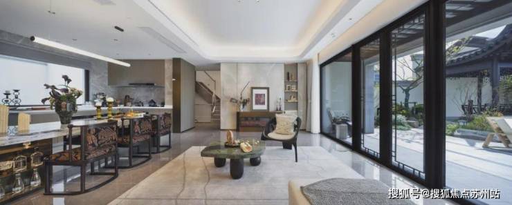 下叠样板间里,一方花园扩展了生活空间,妥帖安放一家人的生活与社交,近4米的客厅与中式庭院渗透交融,灵动的“梦立方”挑高空间,给予生活更多想象力,辟出专门的空间,安放炫酷的机车与时尚的藏品;打造静谧的区域,用作逸趣的茶室与吧台,百般生活意趣,都可以轻松解锁。