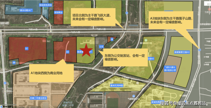 4、A3地块东侧为主干路围子山路,未来会有一定噪音影响。