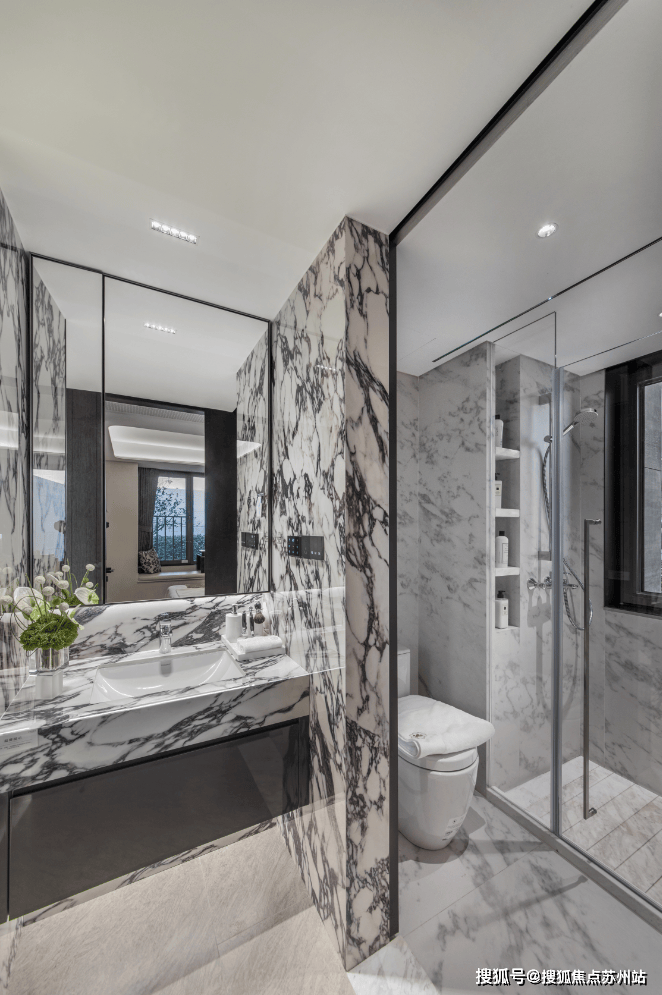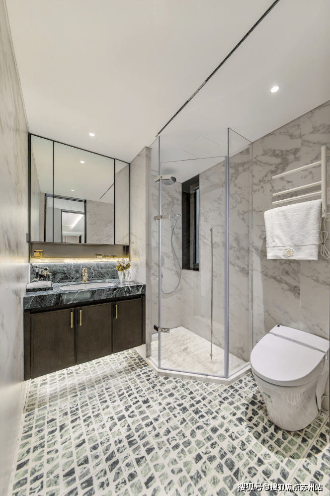 主卫华润观宸润府售楼处电话:400-8123-664【已认证】【预约☎】地面则是海派风地砖,墙面搭配仿汉白玉岩板,呈现出满满海派情调。洗手台台面采用意大利进口Prada绿奢石,高定科勒定制仿古龙头及杜拉维特台盆,恰到好处的高雅气质油然而生。