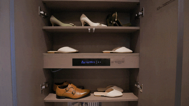 玄关柜华润观宸润府售楼处电话:400-8123-664【已认证】【预约☎】内做了隐藏细节,比如嵌入式鞋柜精灵,为女主人设计长筒靴位及折叠雨伞收纳区,下方更预留了扫地机器人的空间。