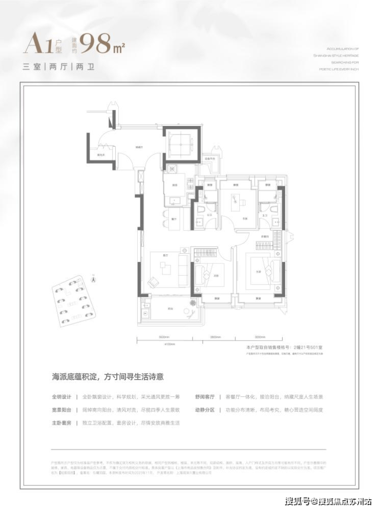 约98㎡3房2卫华润观宸润府售楼处电话:400-8123-664【已认证】【预约☎】,非常标准的微改善户型。