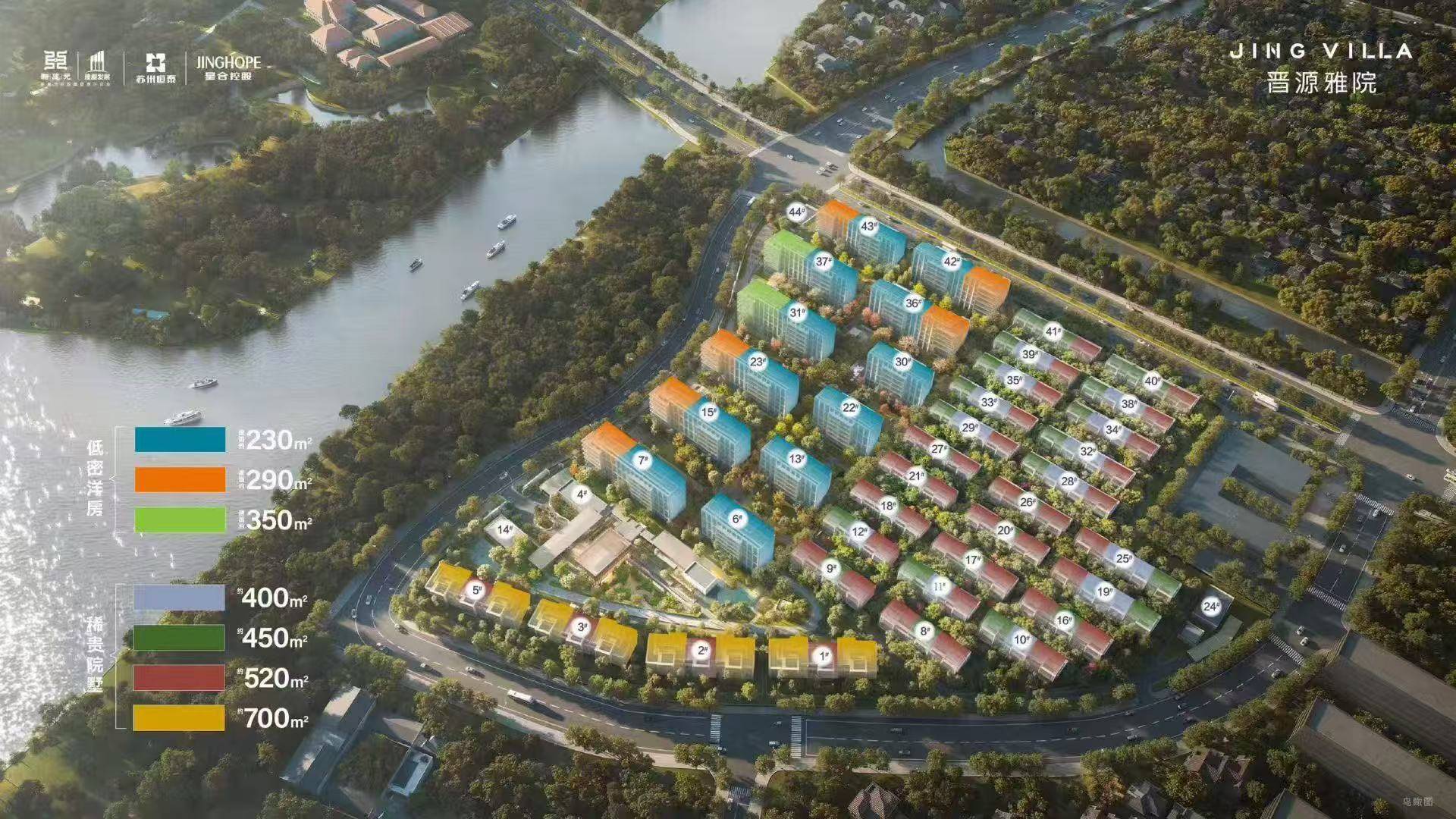 星合晋墅:总建筑面积约8.95万平方米,容积率1.02,拟建23栋3F联排+12栋7F洋房。其中,洋房位于小区西部,联排位于东部,南侧打造湖景别墅。