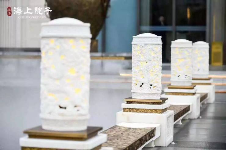 在泰禾海上院子中,四处可见的抱鼓石使用的都是汉白玉材质,彰显了门第尊贵和大户人家的奢华.