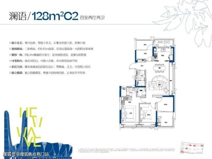 室内做到了四房三卫+储藏间的功能格局,南向面宽约14.6米!