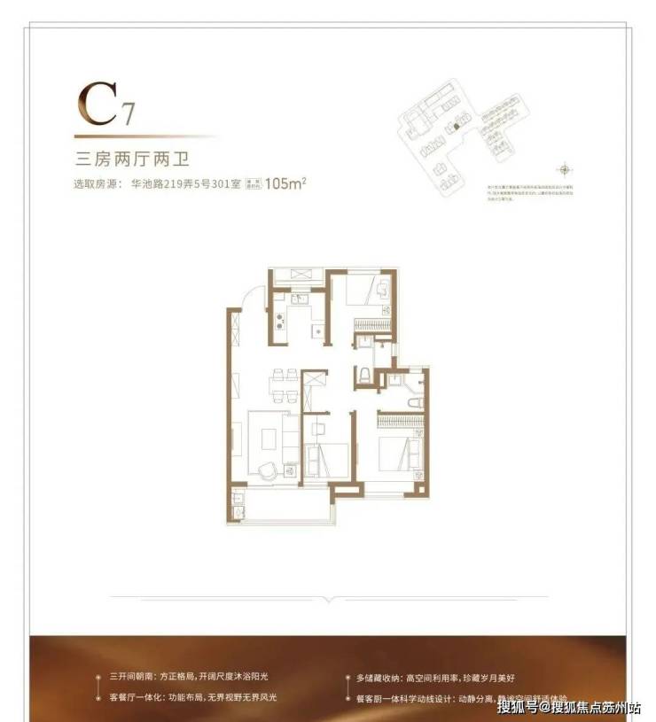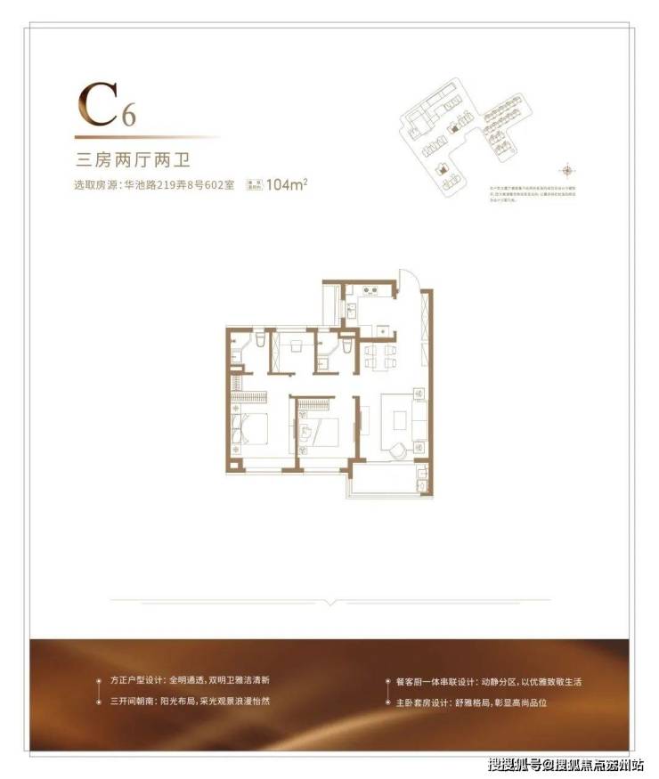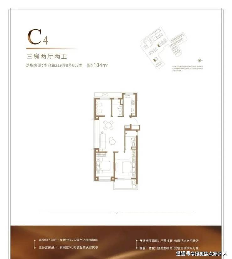 建面约104㎡的户型,能满足从二人世界到二胎生活的全生命周期需求,并且整体2-3开间朝南+客厅宽面阳台,整体的南向采光,视野以及尺度感很优秀,并不会感觉局促。
