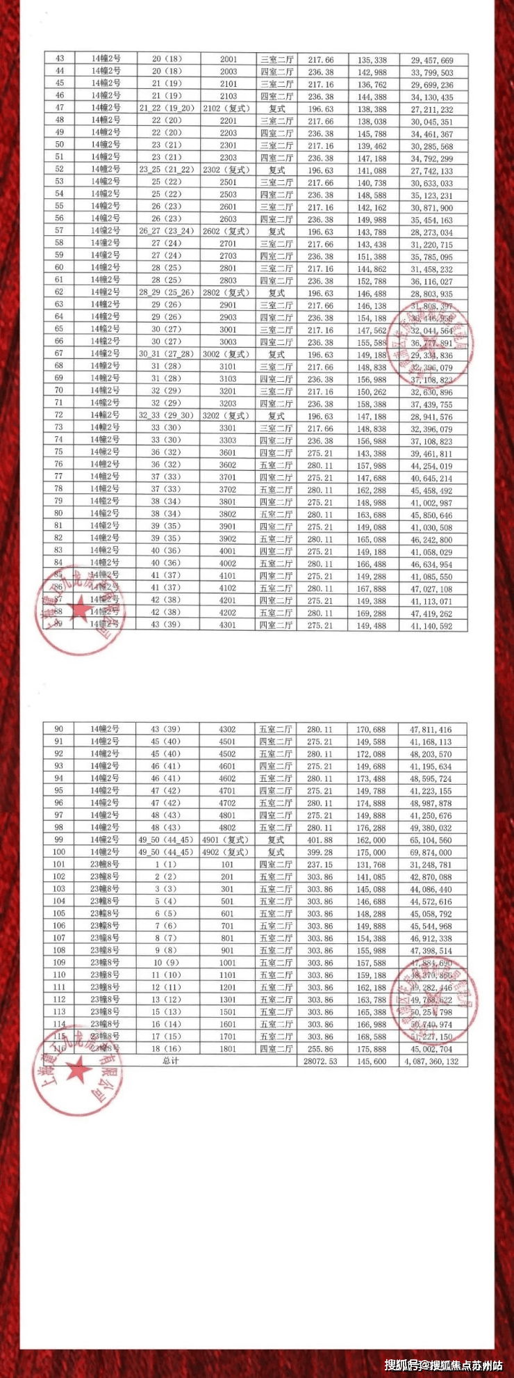 一房一价表如下: