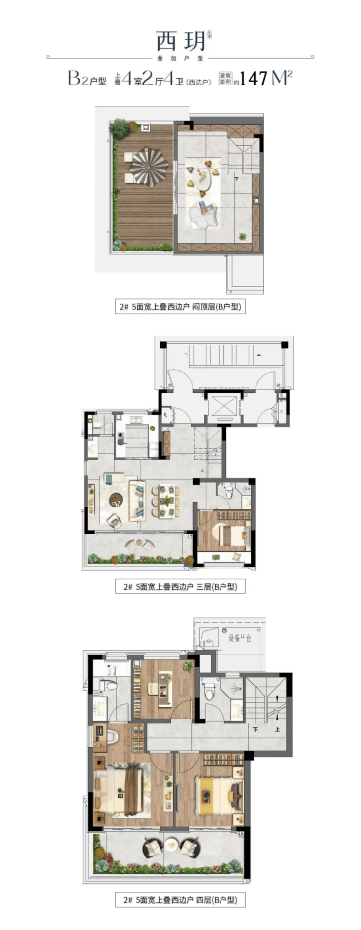 奢享叠墅:建筑面积约147-194㎡,拥有天有地的别墅级生活感受,私密性与尊崇感兼备,定义了太湖畔的高端居住体验。