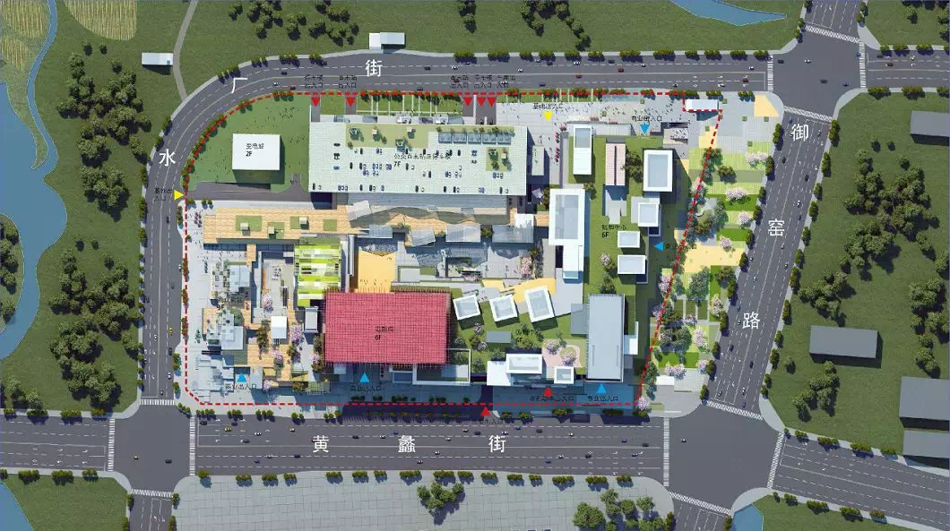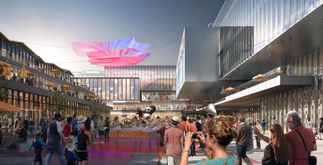 通过在项目中设置一系列的公共广场以及各种活动及休闲设施区块,并由一条多层次的游览动线,从购物中心地上地下,贯穿到商业街各个屋顶高度,将所有业态和活动场所串联成整体,使其成为城市未来生活理想地。