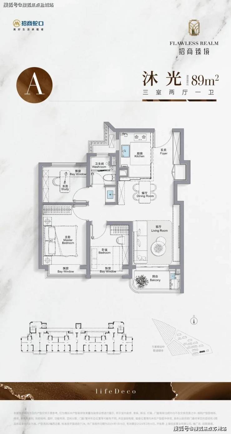 高层89㎡三房一卫采用“S墙”设计释放空间,三开间朝南+全卧室飘窗,总价456万起;