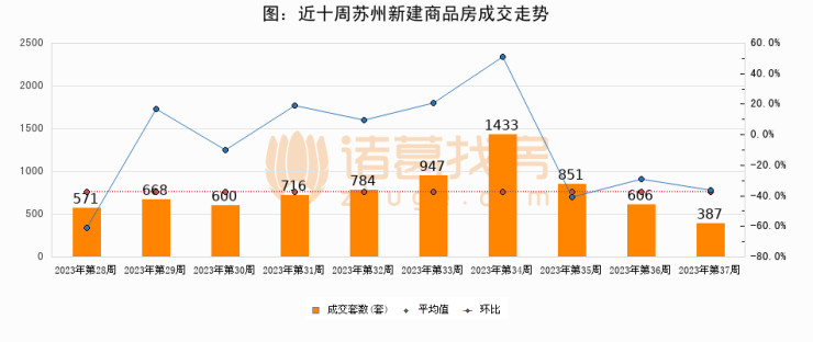 【苏州成交周报】第37周新房成交387套,二手房962套,涨价房源2071套