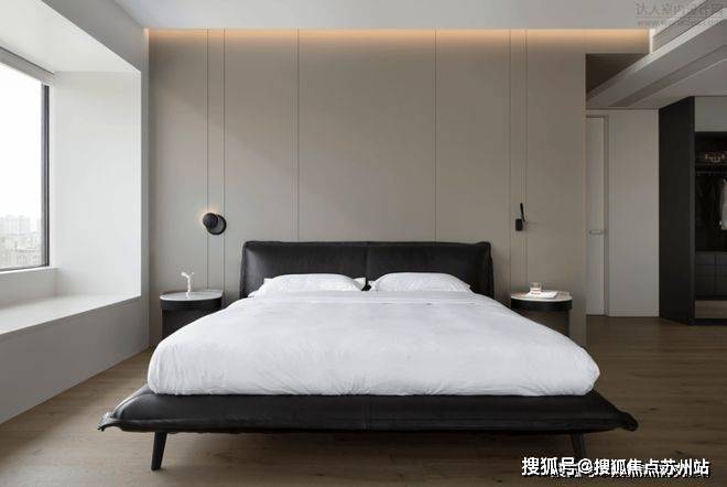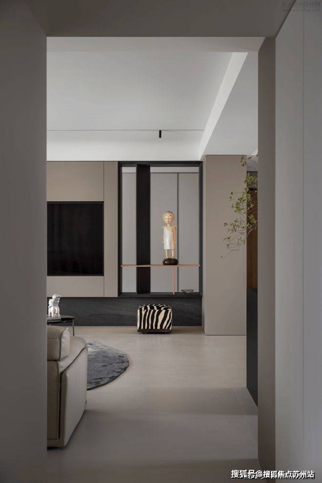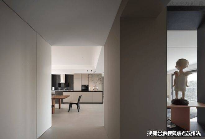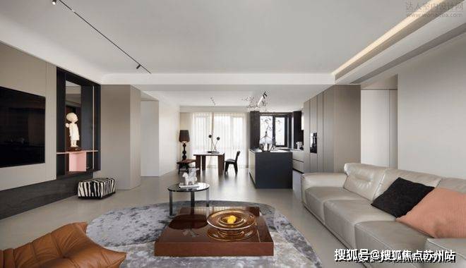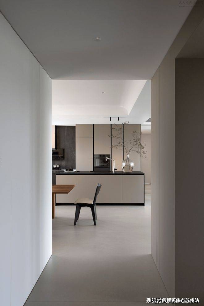 全屋通顶门的设计,不给视觉带来一点突兀感。样板间没有复杂繁琐的视觉堆砌,采用无主灯设计。