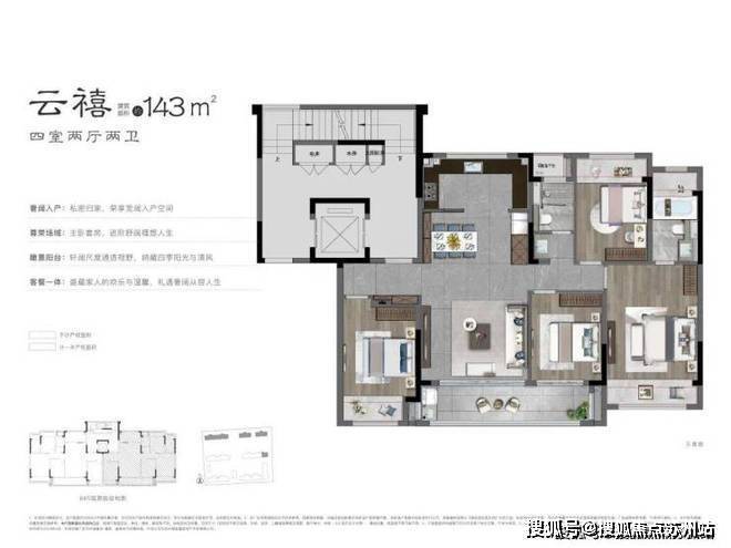 建面约143㎡4房2厅2卫户型图