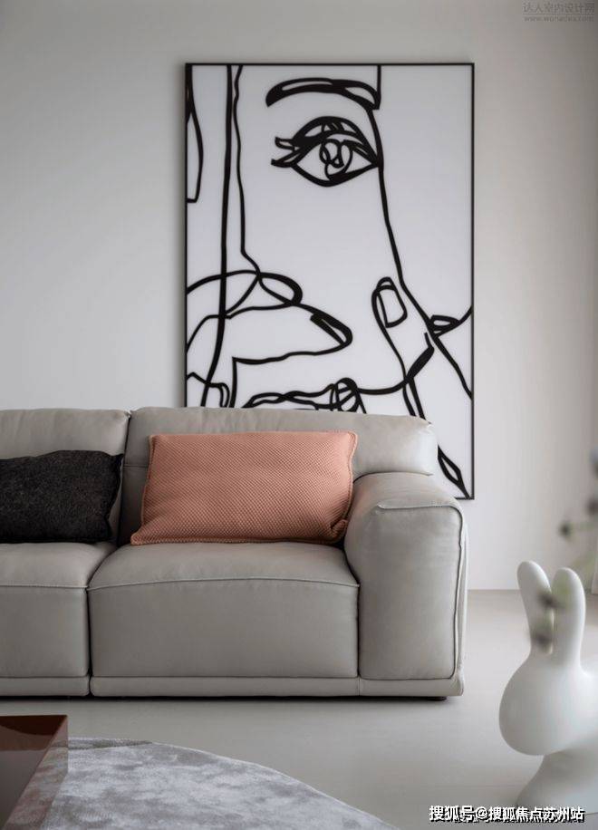 客餐厅一体化的设计把整个平面空间舒展开来,回望这里,每一处都保持着极致的克制和精简,又坚定地宣扬着居住者坚定不移的个性,就像墙壁表面的抽象派画作一样,或许无人能懂,但与家依偎的时光会验证每一次的选择与热爱。