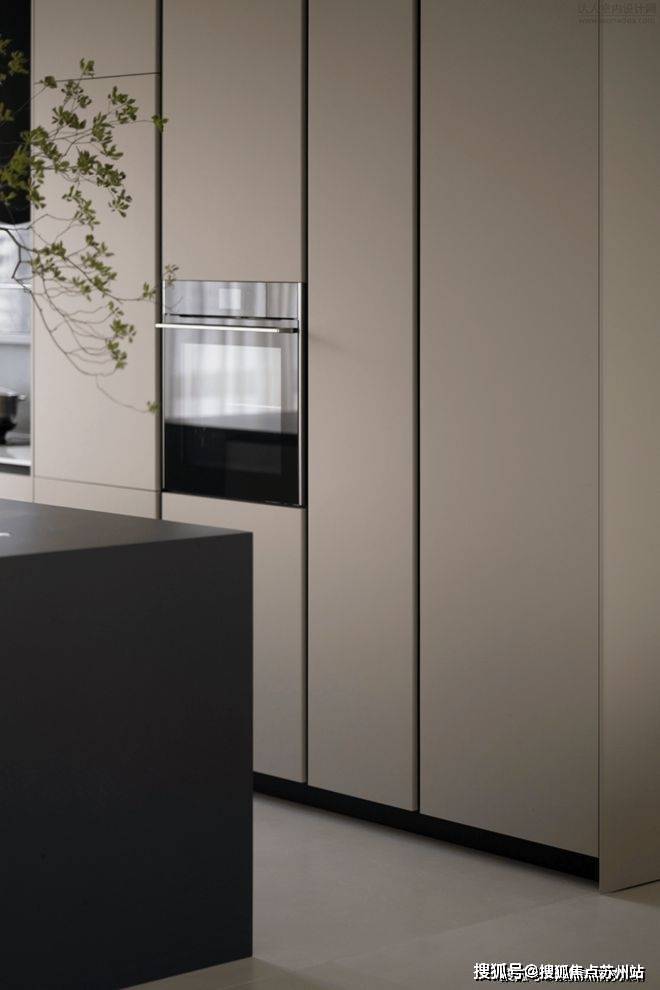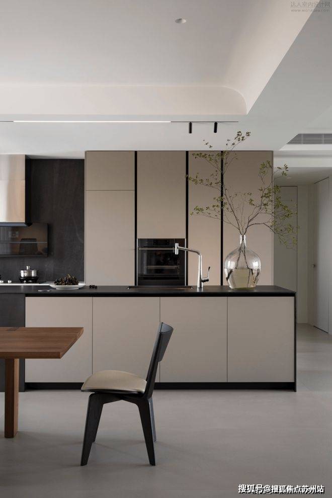 精致美学在于,厨房的推拉门,其就特意采用了金属拉丝的材质。不管是美感,还是实际的生活用途,都仔细替用户考虑了。