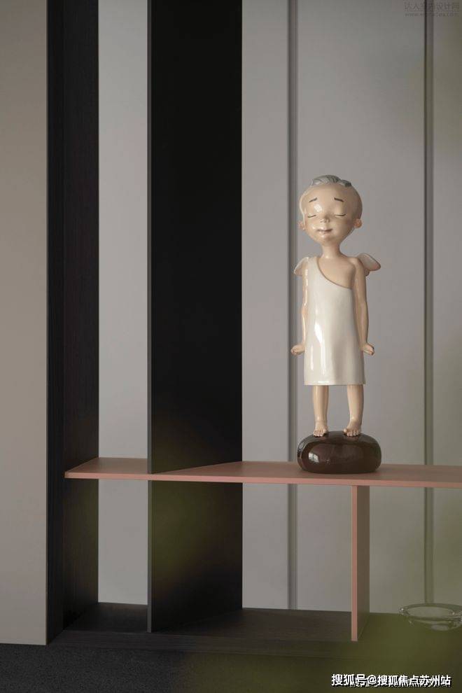 地面上的兔子雕塑憨态可掬,为这片简约增添了些许陪伴。飘窗被做成了一座休息台,躺卧自如,靠在窗边,看车水马龙从水泄不通变得稀疏通畅,阳光从枝叶之间逐渐隐去,时间在流逝,那些顽固的心结也会一一解开。