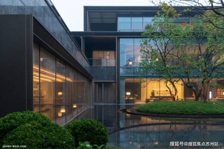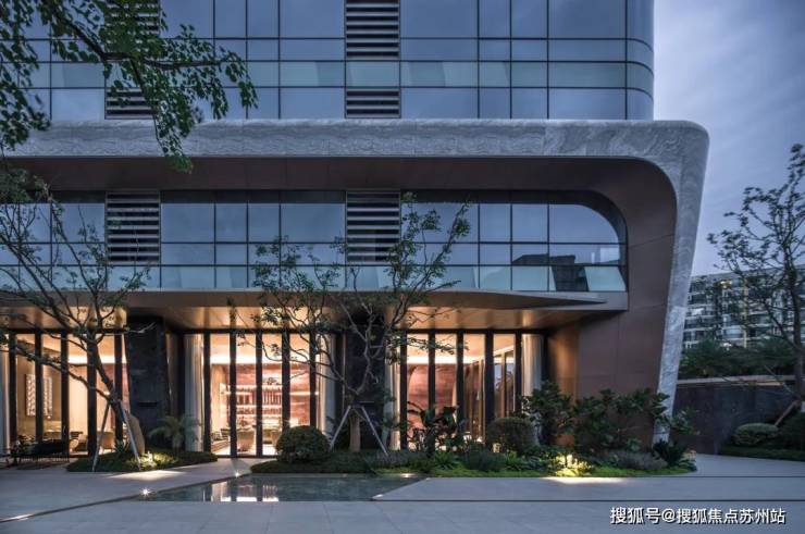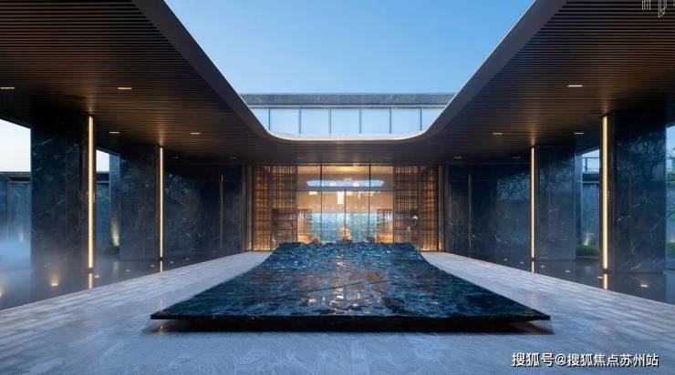 约1000㎡下沉水庭院作为核心水景之一,搭配约6m高双曲面跌水飞瀑,镶嵌1088块铜片,诠释瑞府臻于细节的质感。