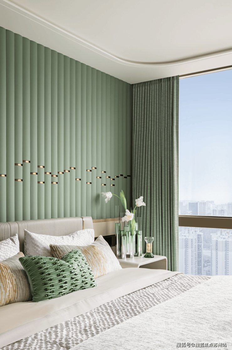 芝澜月华做出了更为创新和具有颠覆性的立面:全新曲面屏立面+弧度转角,4面纯玻璃幕墙,大面积落地窗,超窄边框,转角无立柱,非常明亮和通透。大胆创新在大面玻璃和银白色铝板间融入灰绿色陶板线条。