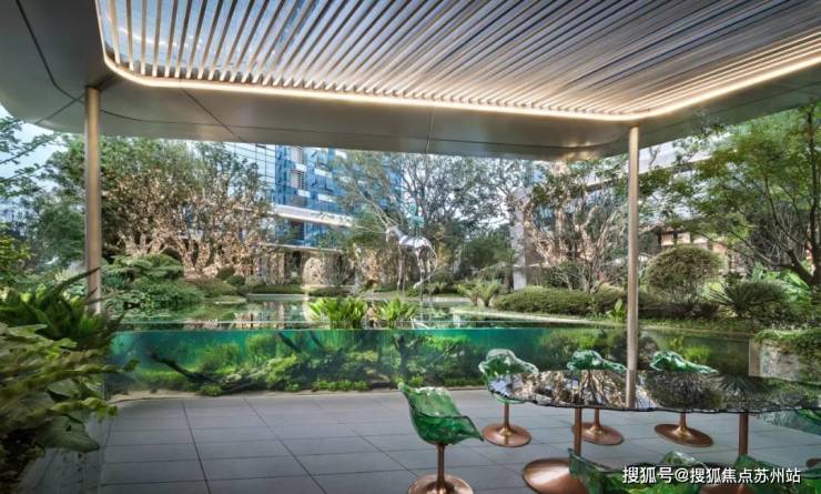 与其他下沉庭院不同的是,天琴华樟打造了纵向空间的立体式园林景观,7大主题园境,8大沉浸式场景,约6米高差的下沉式庭院,八层平台叠加,呈现出有层次感、错落感和立体感的丰富景观体系。