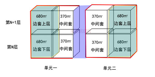 二号楼内的户型为建面约370-720平