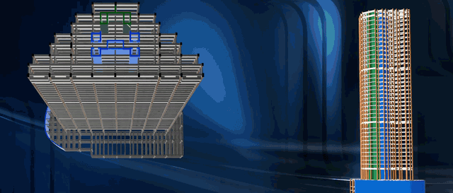 塔楼立面分为上、中、下三段,设计了充分的空中绿化,充满未来主义的立面中透出Artdeco风格,与上海这座远东都市形象相契合.南边的塔楼顶部甚至设计了一座直升机停机坪,而这也是上海唯一的住宅停机坪.
