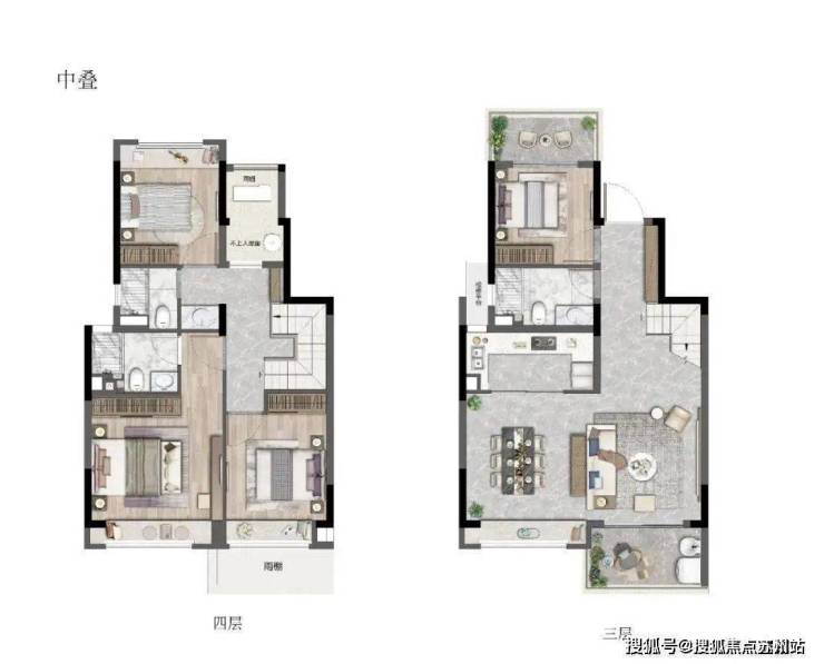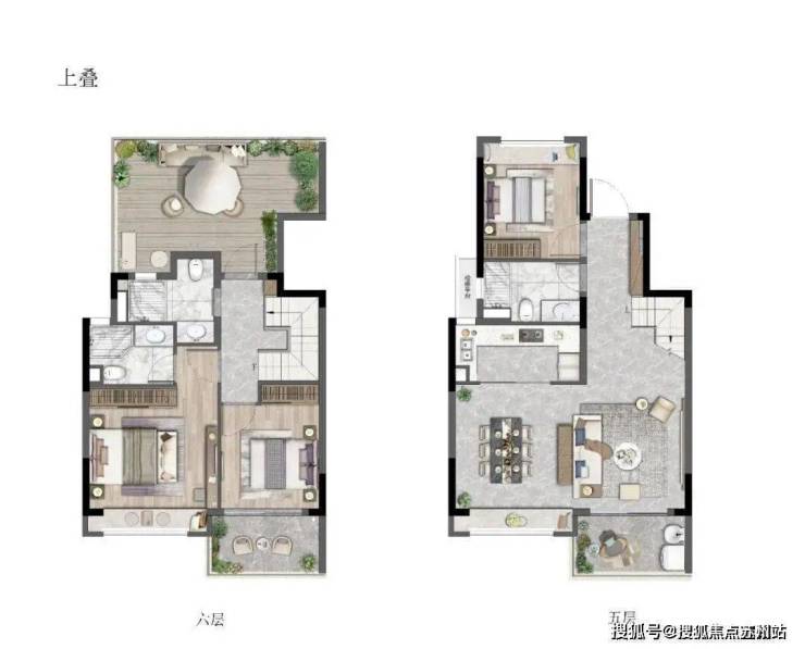 建面约120㎡上叠户型