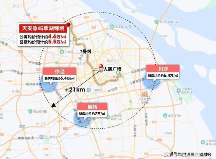 Almost all the areas with a straight-line distance of about 21km from People's Square are popular real estate areas in Shanghai. The average price of new houses in Xujing and Chuansha is about 64000 yuan/square meter, and the Minhang Zhuanqiao is even closer to 70000 yuan/square meter!