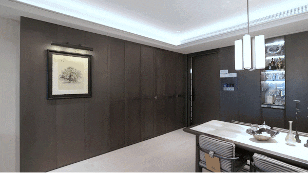【翡雲悦府官方售楼处咨询热线】400-812-3664(24小时服务,人工客服8:00-22:00) 如果说吊顶是建筑的皮肤,那么墙壁便是灵魂的铠甲。卧室区域外,除了s空间,墙壁均为木饰面+岩板,并且使用了天然昂贵的影木,橡木