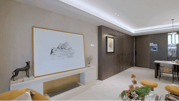 在翡云悦府,奢装是一场基因级审美的暴力输出。当视线掠过吊顶,双层叠级的酒店式吊顶,以极简笔触勾勒出悬浮于空中的云朵褶皱,在灯光下折射出丝绸般的细腻光泽,连光影都成了设计语言。
