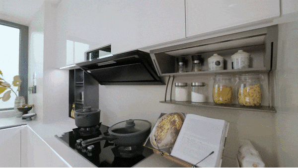 配合抽拉置物架、地柜联动拉篮、天使下拉拉篮、三重骑马柜、随心抽、窄柜高深拉篮的组合拳,每一种都像是为不同的物品量身定制。