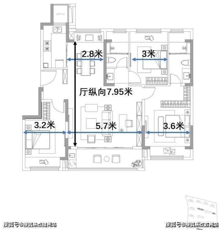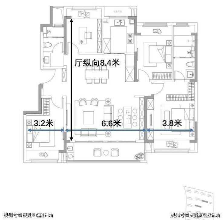 这个户型很棒,面积放大之后,各空间的尺度也上去了,