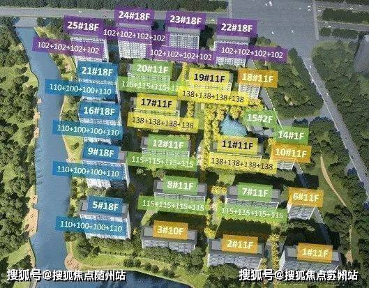 根据规划,项目拟建21栋10-18F住宅,其中,1栋10F洋房、12栋11F洋房、1栋15F小高层、1栋16F小高层、6栋18F小高层。