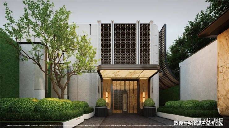 建筑与美学:融贯东方审美与现代简约的立面美学,立面采用精致铝线条(局部涂料)与现代质感玻璃打造,勾勒优雅轻盈的城市封面