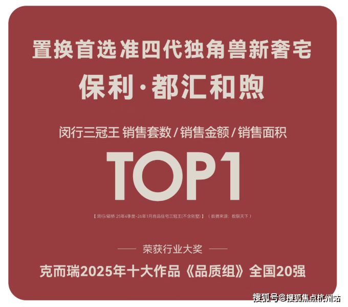 凭借准④代独角兽新奢宅稀缺产品力,荣膺闵行/颛桥2025年4季度—2026年3月商品住宅三冠王!