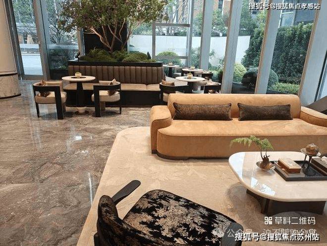 水幕迎宾景墙:一层花园归家区域的水幕景观墙设计,石材、跌水、绿植相呼应的景观细节打造。室外迎宾穹顶:大堂向室外延伸的大型遮雨穹顶,打造酒店式迎宾落客风雨廊,仿佛在向尊贵来客招手,私享园林城市诗意栖居