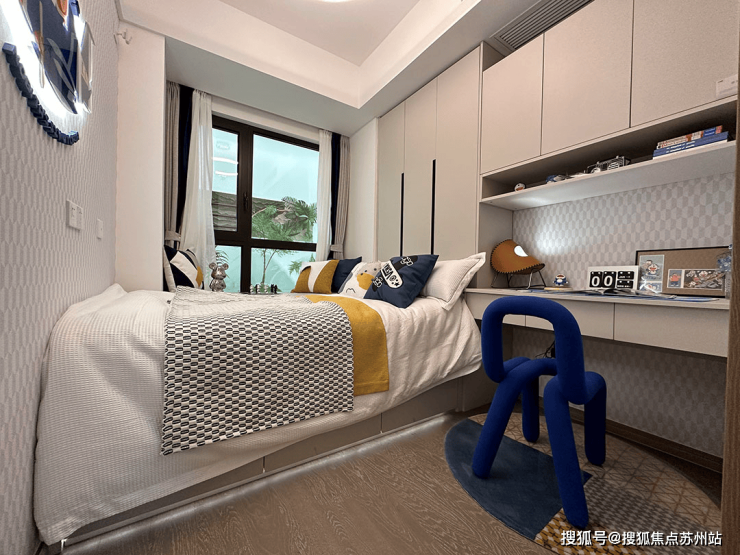 空间的设计省去了多余的过道,餐客厅一体,三房户型,可以满足新婚家庭到三口之家的升级,还能拥有一间独立书房,后期配置榻榻米,也可灵活用作客房,功能性非常完备。