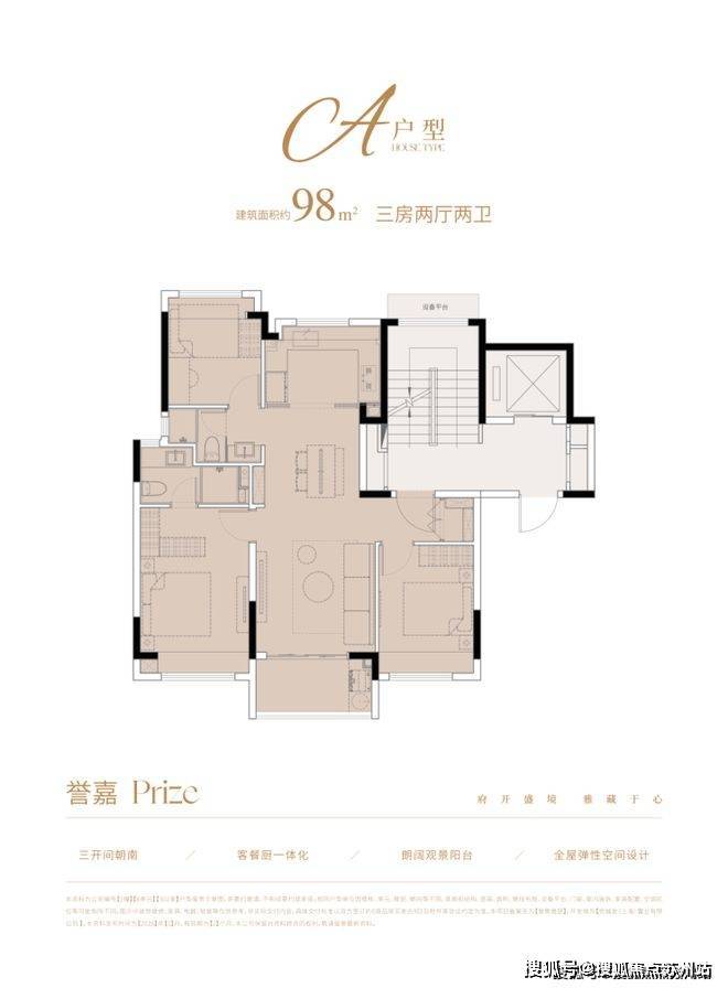 户型特色:82㎡户型三开间朝南,主卧套房配步入式衣帽间;120㎡户型约 5.5 米面宽横厅连接景观阳台;144㎡户型南北通透,约 6.8 米双联阳台。