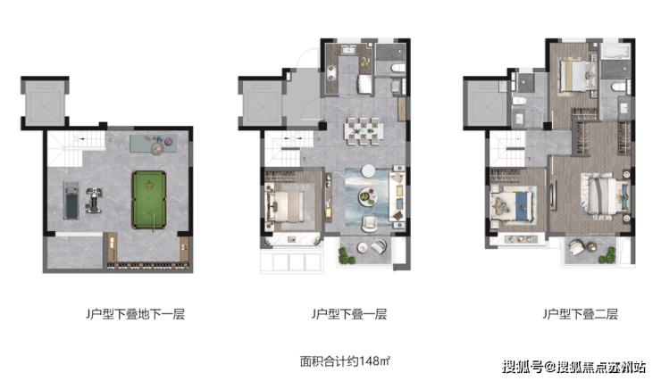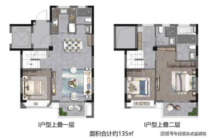 除此之外,项目还有建面约135㎡3房2厅3卫上叠、建面约148㎡4房2厅3卫中叠以及建面约148㎡4房2厅3卫下叠。叠墅产品上有露台下有庭院!