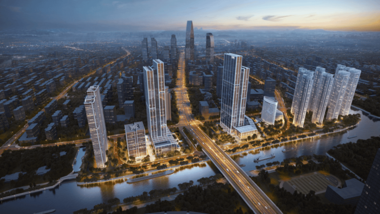 自己的“太古里”——滨水商业街 项目沿着古运河打造了三层滨水商业,规划引入高端餐饮,未来三楼露台可能就是米其林餐厅。这里将是精英们社交、宴请的首选地。