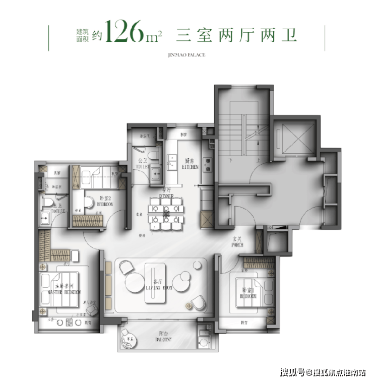 建面约126㎡3房户型图▼